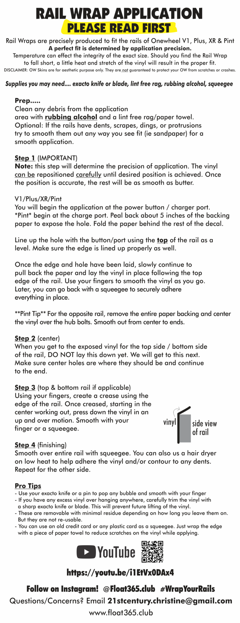 Rail Wraps are precisely produced to fit the rails of Onewheel V1, Plus, XR & Pint.